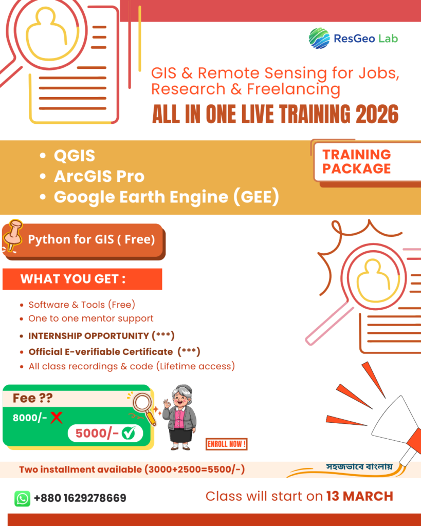 đ ResGeo Lab āĻĒā§āϰāĻĨāĻŽāĻŦāĻžāϰā§āϰ āĻŽāϤ⧠āĻŦāĻžāĻāϞāĻžāĻĻā§āĻļā§ āύāĻŋāϝāĻŧā§ āĻāϏā§āĻā§ â âGIS & Remote Sensing for Jobs, Research & Freelancing 2026â | All in One Online Live Training!